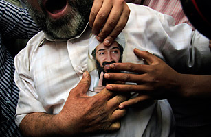 ![]() Một người biểu tình Ai Cập cầm bức hình của Osama bin Laden. |