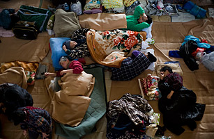 ![]() Hàng trăm người Nhật tạm trú trong một phòng thể chất, ảnh chụp ngày 14/3 |