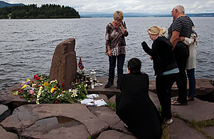 ![]() Người thân của một nạn nhân trong vụ tấn công trên đảo Utoya của Anders Breivik tổ chức lễ tưởng niệm hôm 25/7 |
