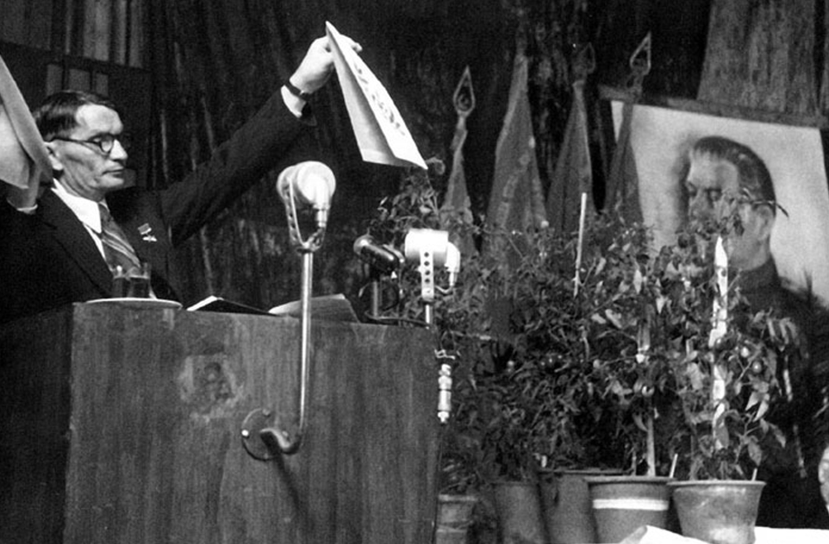Quan điểm của Lysenko về di truyền học được Stalin tán dương và hậu thuẫn bởi nó phù hợp với ý thức hệ Soviet. Nguồn: gonosiana.com.