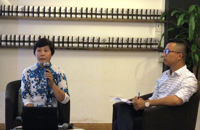 TS. Nguyễn Thị Hậu và nhà văn Nguyễn Trương Quý trao đổi tại tọa đàm. Ảnh: T.Nhàn.