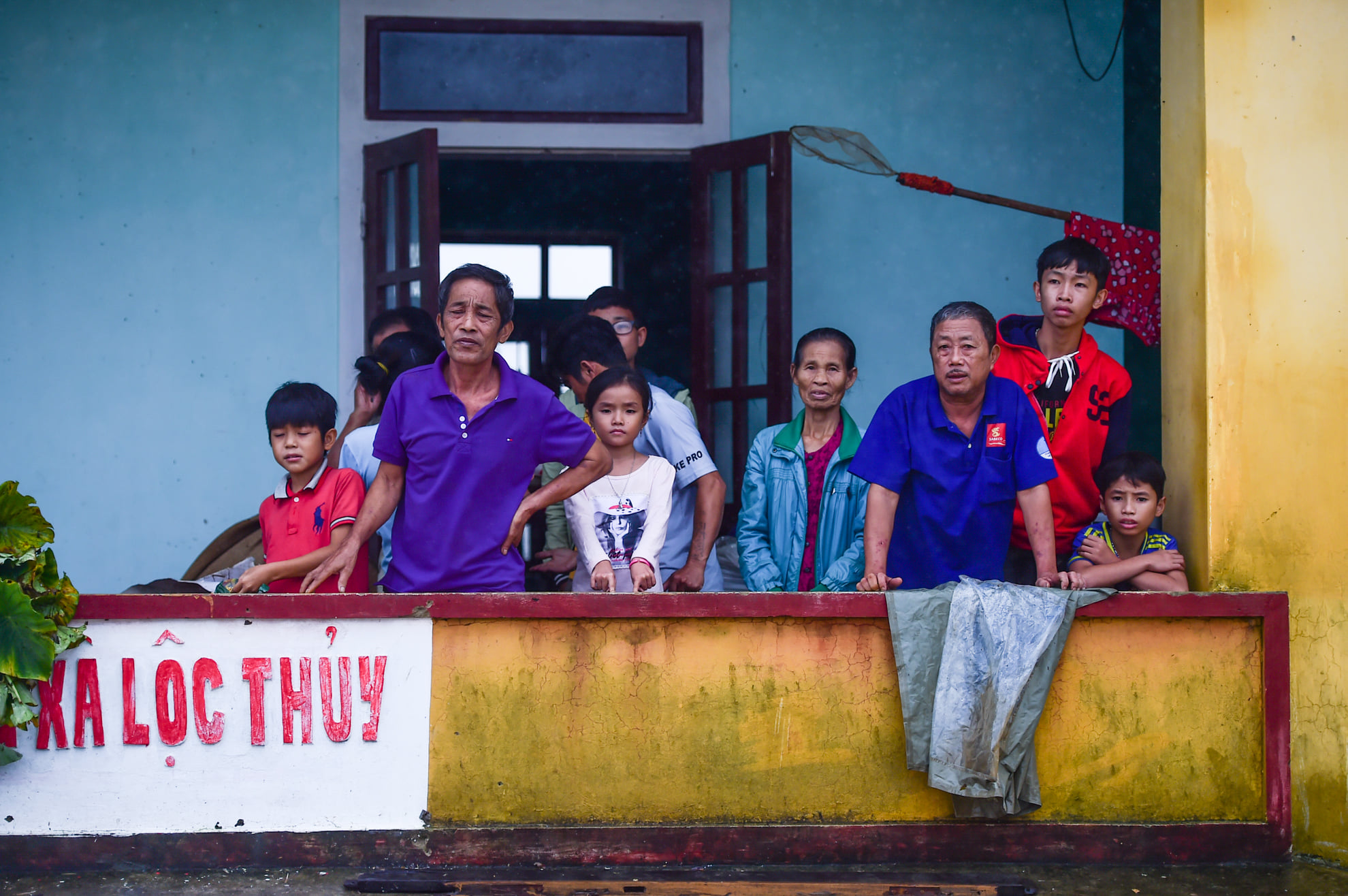 Những người dân mắc kẹt trong lũ ở Quảng Bình, mùa lũ năm 2020. Ảnh: Trương Thanh Tùng.