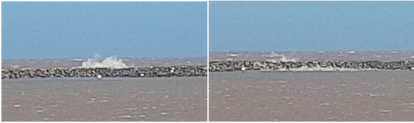 Hình 4. Sóng vỗ từ hai phía vào đoạn kè 2 (ảnh trích từ video ngày 28.02.2017)