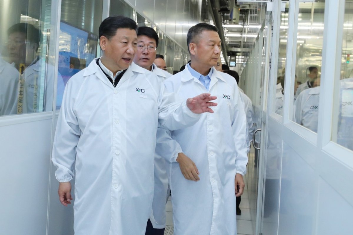 Chủ tịch Trung Quốc Tập Cận Bình thăm Công ty sản xuất thiết bị bán dẫn ở Vũ Hán, thủ phủ tỉnh Hồ Bắc, vào ngày 26/4/2018. Trong chuyến thăm, ông kêu gọi Trung Quốc phát triển các công nghệ lõi của riêng mình. Ảnh: Xinhua.