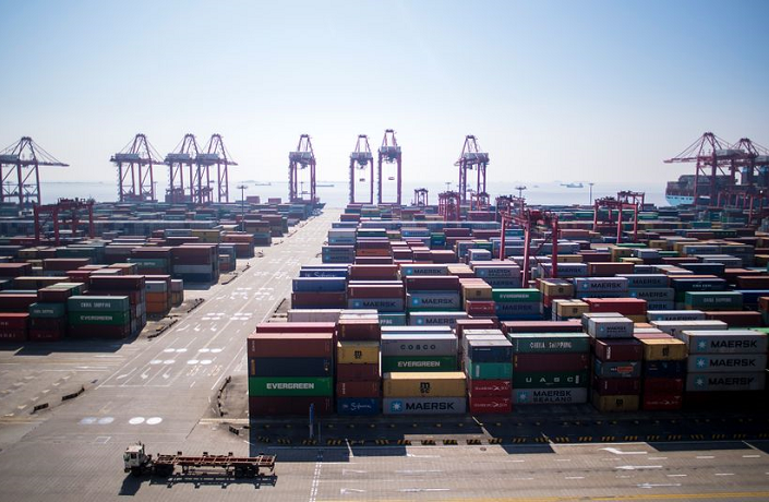 Bảy trong số mười cảng Container lớn nhất thế giới đều tập trung ở ven biển Trung Quốc. Trong ảnh là dãy container ở Thượng Hải.