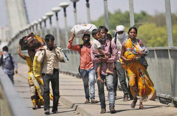 Người di cư đi bộ trở về nhà ở Ấn Độ. Nguồn ảnh: Theguardian, đăng ngày 30/3/2020.