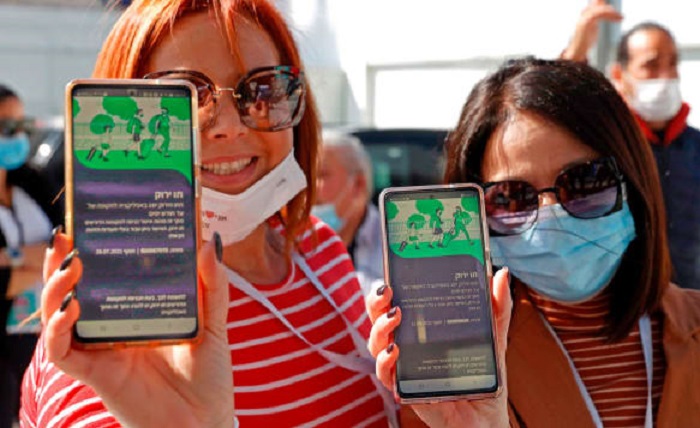 Trên thực tế, Israel không bắt buộc người dân phải tiêm chủng. Tuy nhiên một ủy ban của chính phủ đã ra chỉ thị đối với mọi công chức, viên chức trong cơ quan nhà nước là thủ trưởng cơ quan có quyền đòi nhân viên phải có thẻ tiêm chủng – hoặc mỗi tuần phải làm một xét nghiệm – PCR mới. Israel khuyến khích mọi người hưởng ứng. Israel phát triển cái gọi là Hộ chiếu xanh dành cho những người tiêm chủng hai lần hay đã khỏi bệnh. Với hộ chiếu này, người ta được quyền vào bên trong nhà hàng, vào rạp hát, chiếu bóng hoặc nhà tập thể hình vv…
