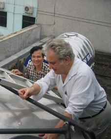 GS.Pierre Darriulat hướng dẫn những nhà khoa học trẻ trên thiết bị của Phòng thí nghiệm tia vũ trụ VATLY.