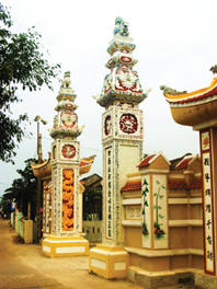 | Hai trụ biểu mới phục hồi ở đình làng Lộc Điền – Ảnh: Đ.Dụ |