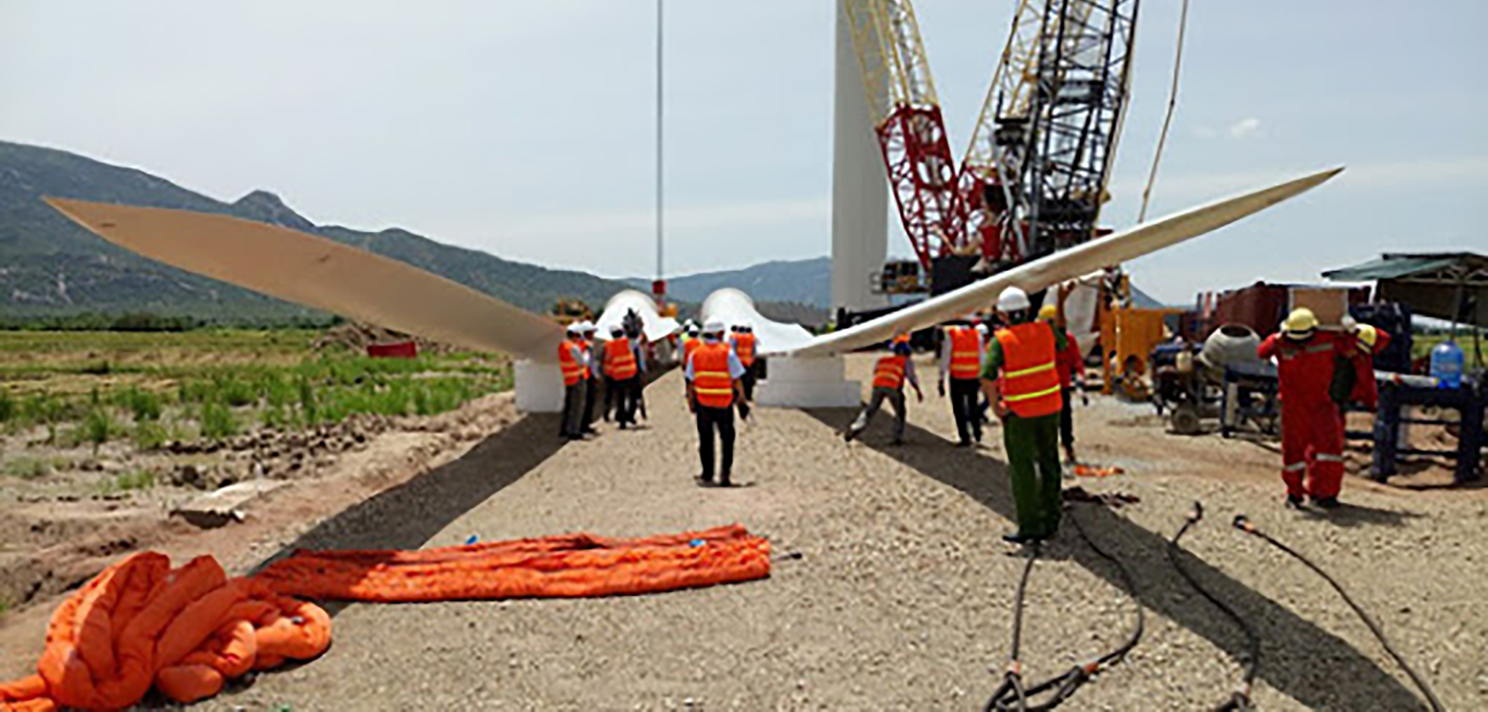 Lắp đặt các trụ điện gió ở nhà máy Điện gió Đầm Nại. Nguồn: icon.com.vn