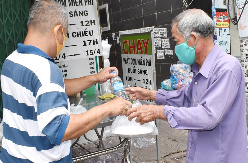 Quán cơm chay Bình An, số 49 đường Ngô Quyền, Quận 10 phát cơm miễn phí cho người nghèo, người lao động tự do gặp khó khăn. Nguồn: https://hcmcpv.org.vn/