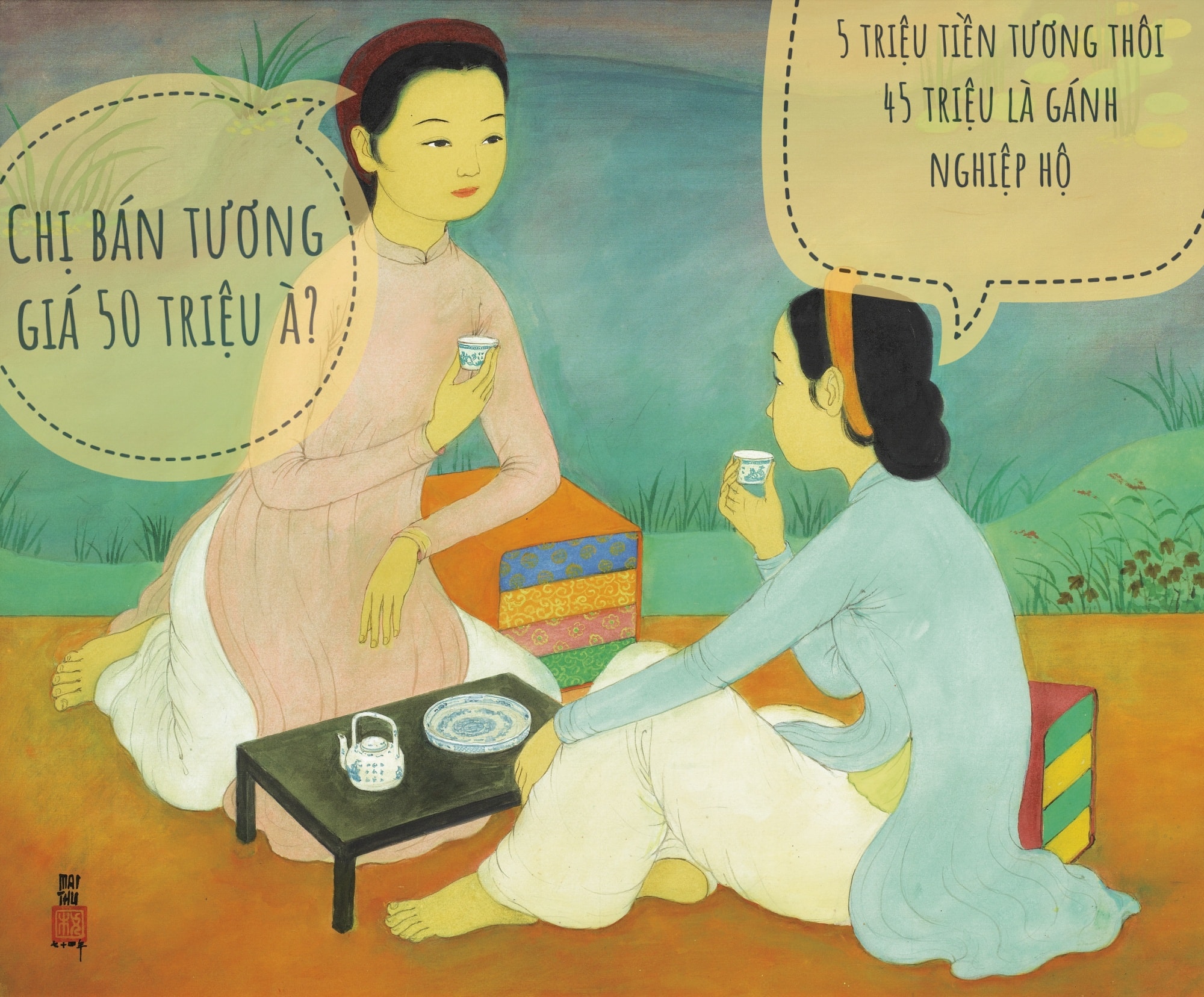 Một internet memes chế giễu các hội thực dưỡng do anh Hùng tự biên tự diễn (dựa trên tranh của Mai Trung Thứ).