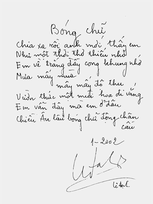 Lưu bút bài thơ Bóng chữ của nhà thơ |