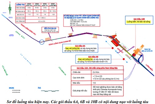 Tôi được biết là từ một năm nay, đã phải nạo vét luồng cho tàu chở than vào cảng của nhà nhiệt điện, ở cạnh luồng vào sông Hậu, và có đoạn chung với luồng này, khoảng 2,5 triệu mét khối bùn cát, thậm chí còn hơn. Mặt khác, mặc dù chưa thông luồng, đã có hiện tượng sạt lở bờ kênh.