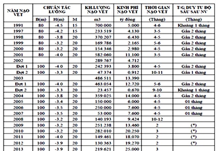 Ngoài việc nói không rồi có, cần biết thêm là trong 23 năm, từ năm 1991 đến 2013, chưa năm nào khối lượng bùn cát ở cửa Định An được Cục Hàng hải duyệt cho nạo vét vượt quá 600.000 mét khối! Các năm khi dự án được hình thành và trình để được phê duyệt, khối lượng nạo vét hầu như không có gì! Xem bảng nạo vét luồng qua cửa Định An dưới đây.