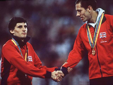 ![]() Sebastian Coe và Steve Ovett, hai vận động viên điền kinh người Anh đoạt huy chương vàng tại Olympic Moscow 1980. Đoàn vận động viên Anh đến tranh tài bất chấp ý muốn tẩy chay kỳ Thế vận hội lần này từ phía Chính phủ Anh. Vì vậy, họ thi đấu thuần túy dưới lá cờ Olympic, và bài hát chính thức của Olympic được cử lên thay cho quốc ca Anh mỗi khi có vận động viên của đoàn giành huy chương. |