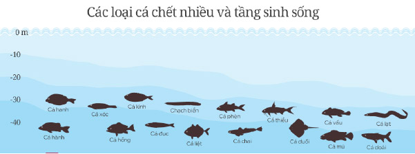 ![]() Hình 2. Các loại cá chết và tầng sinh sống |