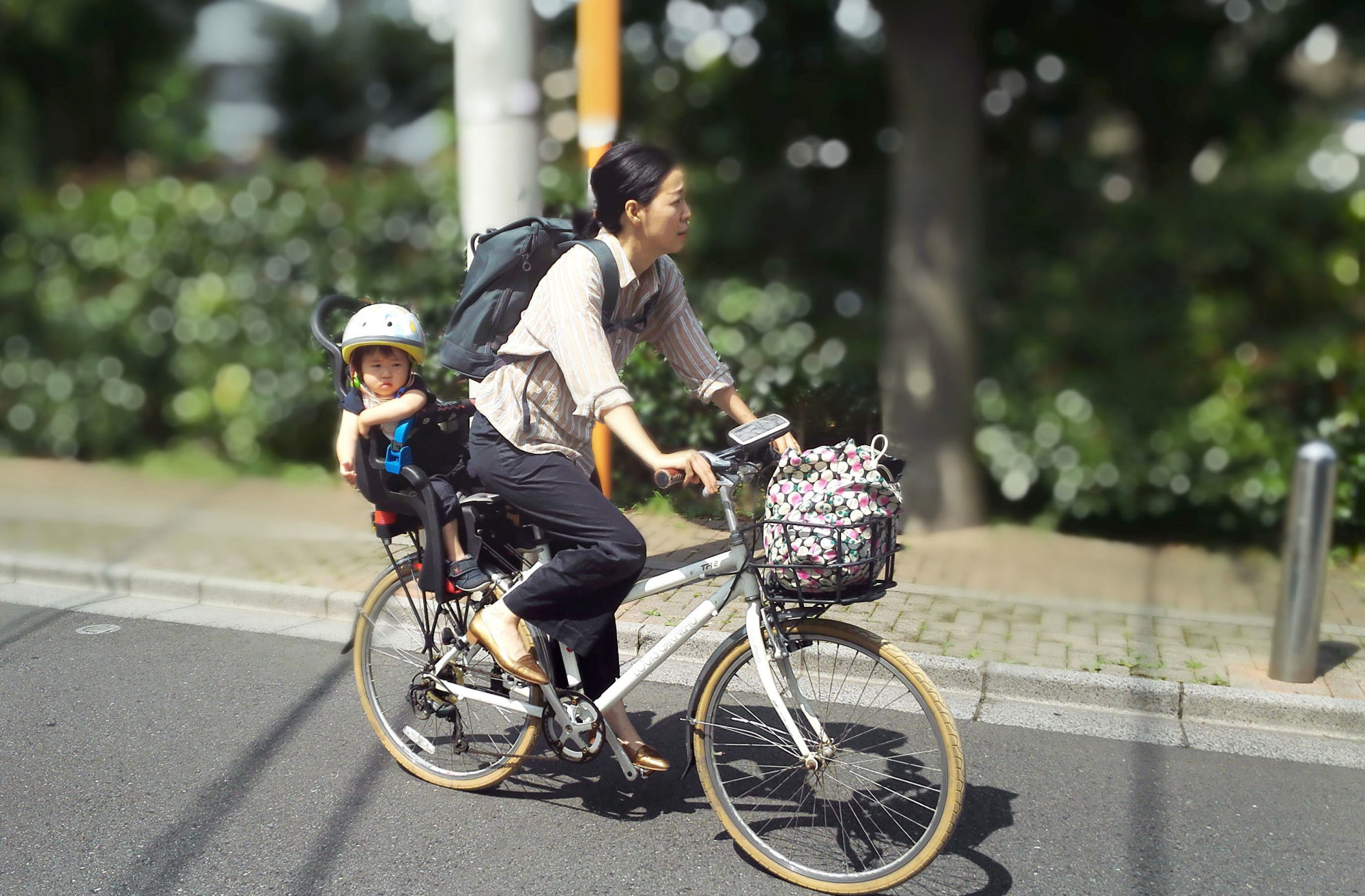 Một người mẹ chở con đi gửi trẻ và đi làm trên đường phố Tokyo. Nguồn: japantimes.