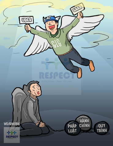 Tuy nhiên, về luật thì khác. Nếu với các hãng vận tải truyền thống, tài xế và doanh nghiệp là công nhân và doanh nghiệp – hai chủ thể được điều chỉnh duy nhất bởi Luật Lao động. Trong khi đó, tài xế và Grab Việt Nam, đáng tiếc, theo rất nhiều quan điểm và ý kiến khác nhau dường như có thể đang được điều chỉnh bởi những ba luật: Luật Thương mại 2005, Luật Dân sự 2005 và Luật Lao động 2012/2019) – kể cả khi Grab có được coi là doanh nghiệp vận tải hay cung ứng dịch vụ môi giới công nghệ.