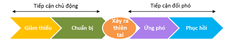 Chu kỳ của công tác quản lý rủi ro thiên tai có thể minh họa như trong hình. Xu hướng ở các nước phát triển hiện nay người ta tập trung đầu tư vào phần giảm thiểu và chuẩn bị, hướng đến cách tiếp cận chủ động. Lúc đó người dân và các nhà quản lý sẽ chủ động hơn với lũ lụt hướng đến giảm thiểu được các thiệt hại nặng nề về người và tài sản.