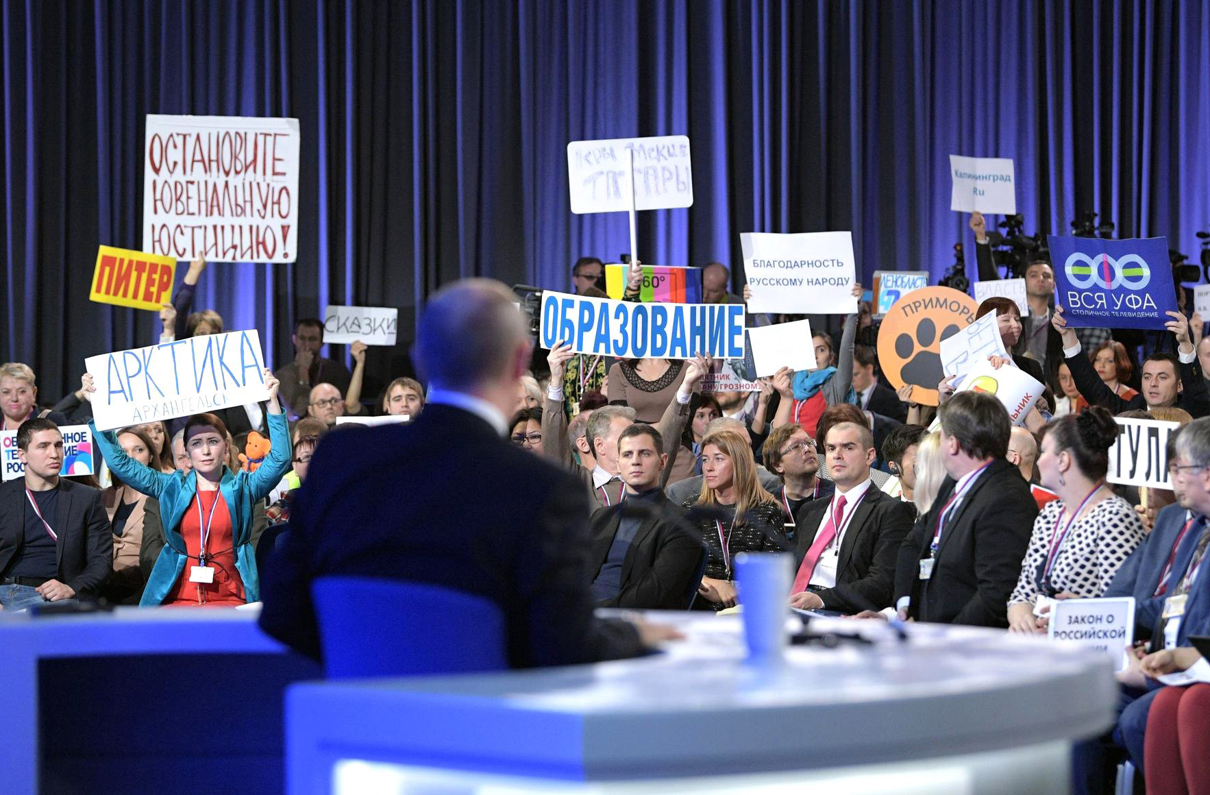 Tổng thống Vladimir Putin trong một buổi hội nghị báo chí phát biểu rằng: “Internet là một dự án của CIA và bây giờ vẫn vậy”. Nguồn: kremlin.ru