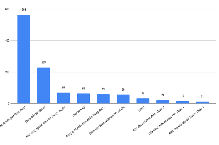 Top 10 chùm lây nhiễm chính tại TP HCM (dữ liệu cho đến ngày 26/6).