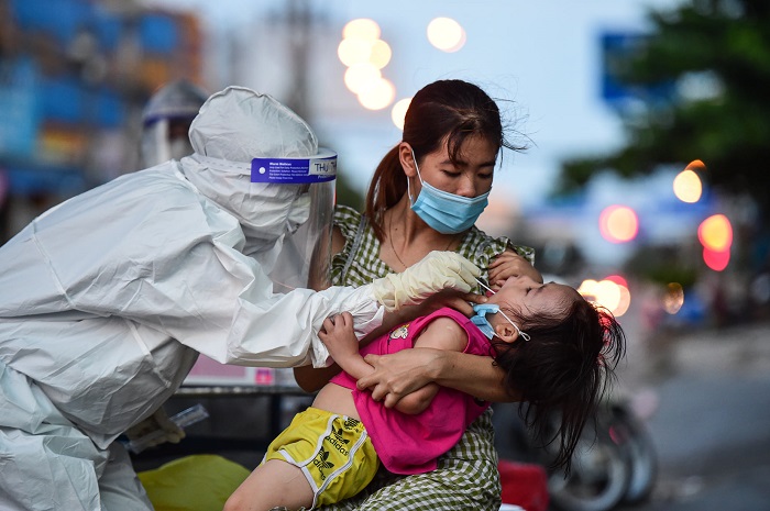 Lấy mẫu xét nghiệm COVID tại TP HCM. Ảnh: Trương Thanh Tùng.
