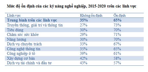Một trong những khám phá quan trọng nhất của báo cáo đó là trung bình 35% kĩ năng cơ bản mà các công ty yêu cầu ở người lao động hôm nay sẽ bị thay đổi vào năm 2020. Nhưng bức tranh điều gì sẽ diễn ra không khiến cho chúng tôi ngạc nhiên bằng thời điểm diễn ra điều đó quá gần và mọi người đều nhận thức quá rõ điều đó.