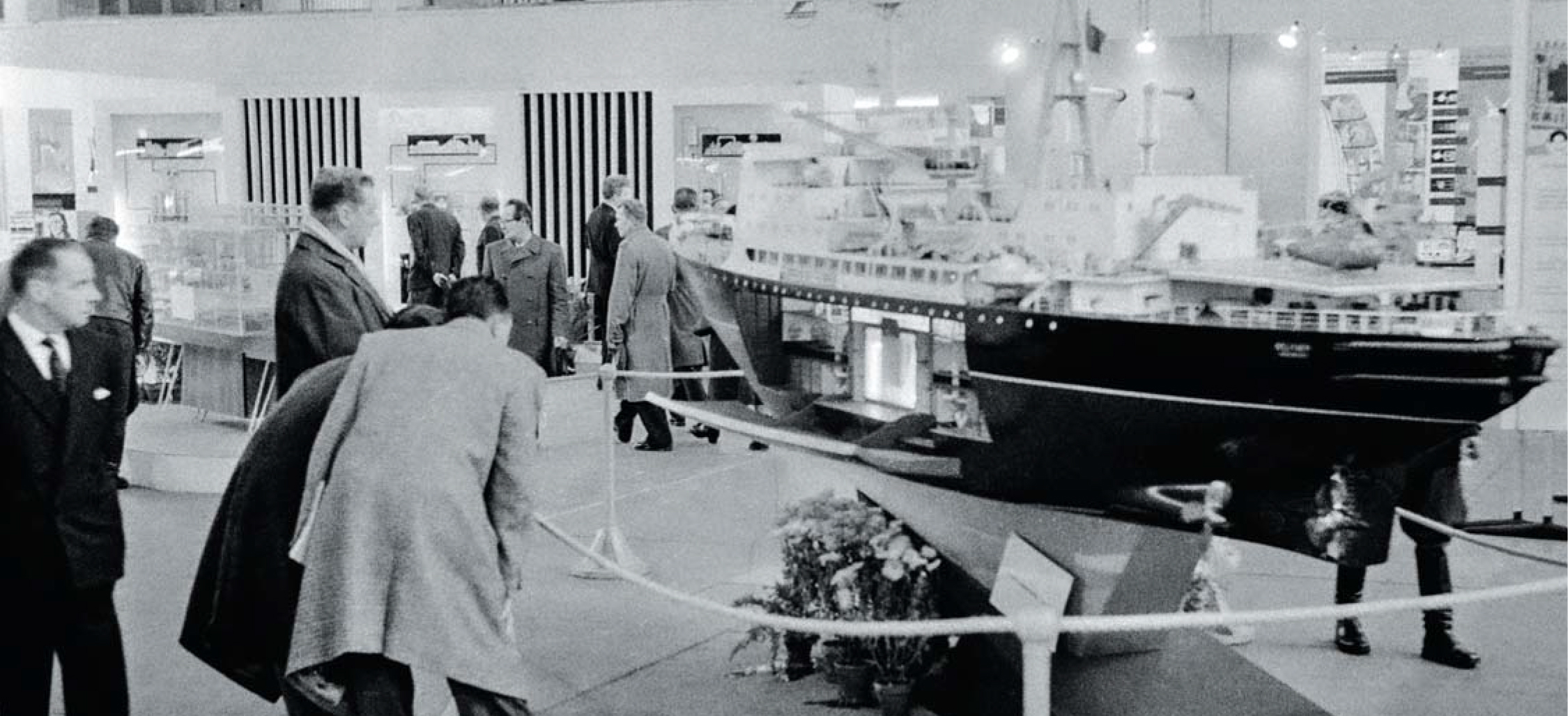 Mô hình tàu phá băng hạt nhân Lenin thu hút sự chú ý của khách tham quan tại triển lãm công nghiệp Liên Xô tại Helsinki năm 1959 (Ảnh của Väinö Kannisto, 1959, được Helsinki City Museum cho phép, giấy phép CC BY 4.0.)