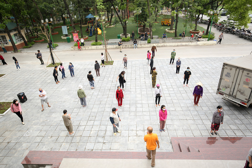 Nới lỏng để lưu thông nền kinh tế hay tiếp tục xiết chặt giãn cách xã hội là câu hỏi khó. Ảnh: Người dân gặp khó khăn trong dịch Covid-19 đi lấy gạo cứu trợ. Ảnh: Trần Cường/Thanh Niên.