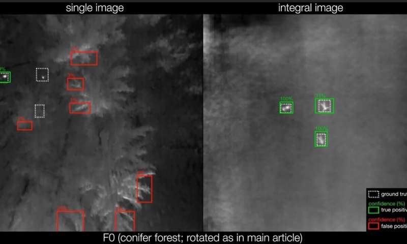 Giải pháp mà họ phát triển bao gồm việc ứn dụng một phần mềm AI để xử lý đa hình ảnh trong một khu vực cho trước. Họ so sánh nó với việc sử dụng AI đế xử lý dữ liệu từ những kính viễn vọng vô tuyến khác nhau. Việc này cho phép nhiều kính viễn vọng vận hành một cách hợp nhất như một kính viễn vọng lớn. Theo cách làm tương tự, việc ứng dụng AI mà họ áp dụng có thể cho phép họ có được những hình ảnh nhiệt đa dạng do một máy bay trực thăng (hoặc drone) tạo ra một hình ảnh như thể có được từ một máy quay với một ống kính lớn. Sau khi xử lý, các hình ảnh này đã tạo được ra một trường sâu hơn – trong đó các phần ngọn cây chỉ xuất hiện một cách lờ mờ trong khi người dưới mặt đất lại trở nên dễ nhận biết hơn nhiều. Để huấn luyện cho hệ AI này, các nhà nghiên cứu đã phải tạo ra một cơ sở dữ liệu hình ảnh của riêng họ. Họ đã sử dụng nhiều drone để tạo ra những bức ảnh của các tình nguyện viên trên mặt đất ở nhiều vị trí khác nhau.