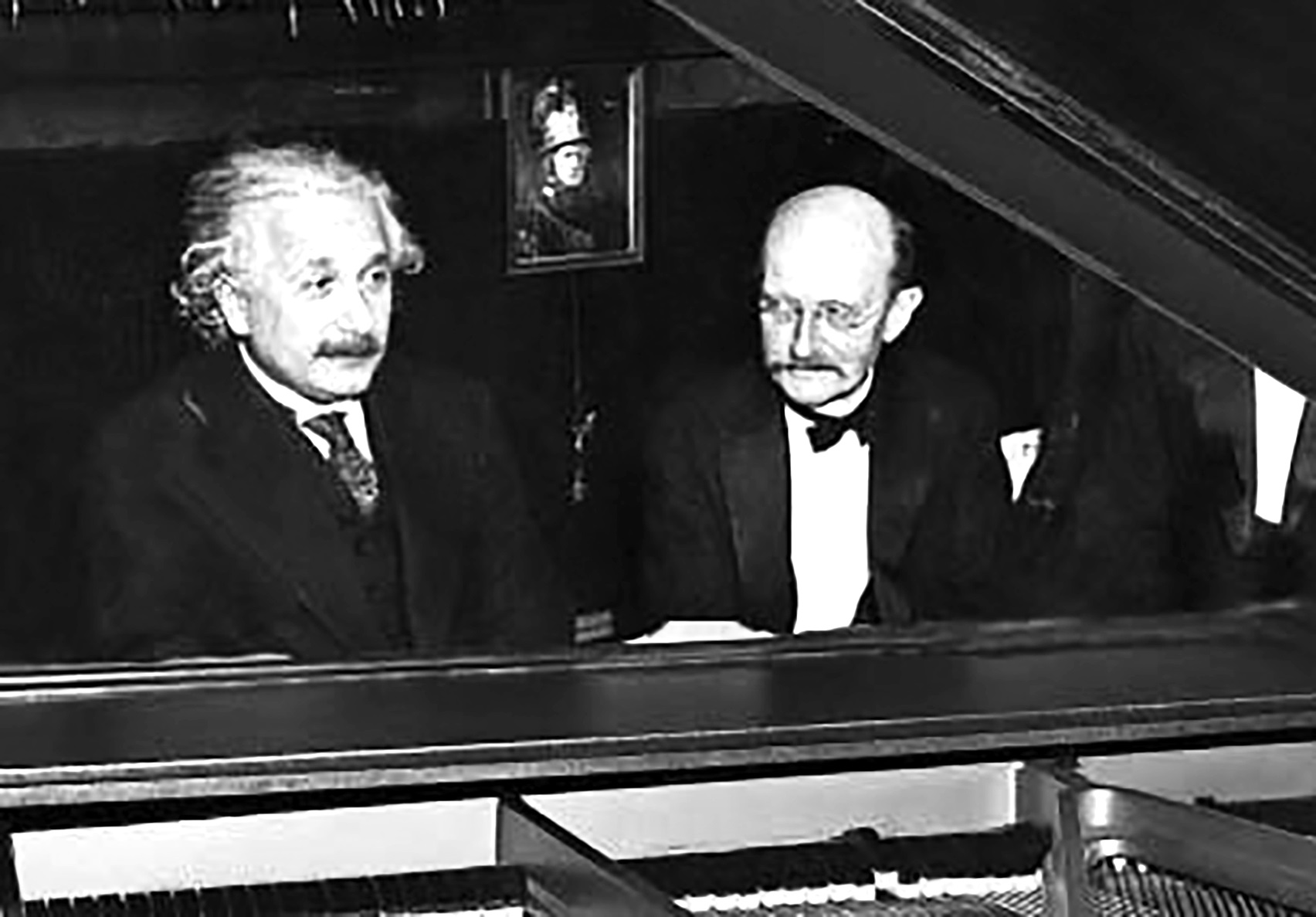 Albert Einstein và Max Planck – cũng là một trong những nhà vật lý quan trọng nhất của thế kỷ 20, bên cây đàn piano. Nguồn: MaxTheTrax.