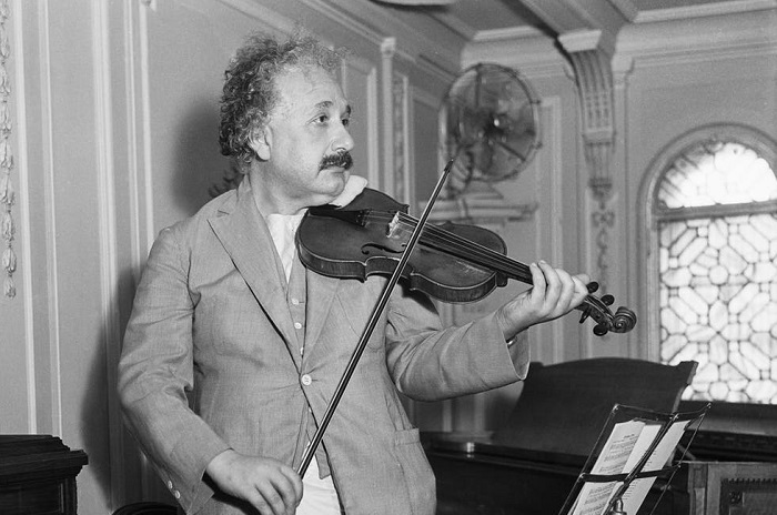Einstein được biết đến với phong thái chơi violin phóng túng có tiếng. Ông thường biểu diễn tứ tấu với những nghệ sỹ nổi tiếng nhất thời bấy giờ, và chơi tốt đến nỗi tự hào nếu không nói là nổi bật. Ảnh hưởng của việc chơi nhạc lên cách tiếp cận sáng suốt và sâu rộng trong nghiên cứu khoa học của Einstein là không thể xem nhẹ. Không phải ngẫu nhiên mà hai nhạc sỹ ưa thích nhất của ông là J. S. Bach và W. A. Mozart đều có những tác phẩm mang dấu ấn đặc biệt: các nốt nhạc tuân theo cấu trúc của hình thức âm nhạc với những trình tự của các chủ đề, các chương trong mỗi tác phẩm.