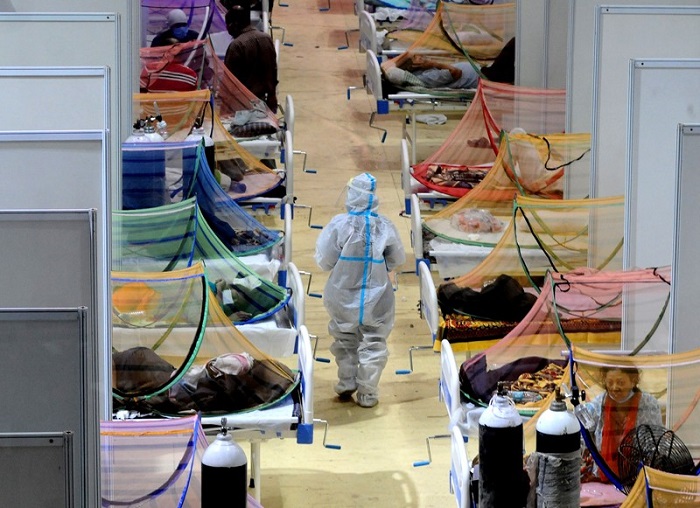 Một trung tâm chăm sóc Covid-19 ở New Delhi. Ấn Độ đã ghi nhận 400.000 ca mắc và hơn 3.500 ca tử vong mỗi ngày do Covid-19. Ảnh: Imtiyaz Khan/Anadolu Agency/Getty
