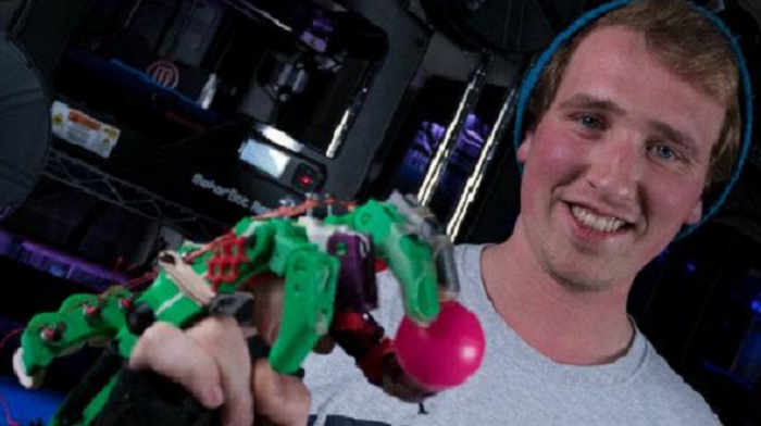 Với một máy in 3D và khoảng 15 USD, Ryan Bouricious, sinh viên năm cuối chuyên ngành vật lí, Đại học Ithaca, New York, đã tạo ra một bàn tay giả có thể dùng để cầm, viết và thậm chí là bắt bóng.