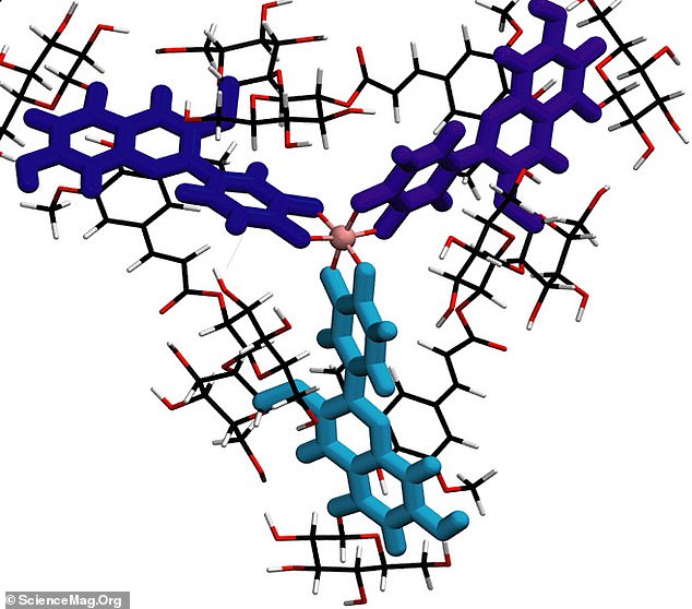 Trong nghiên cứu mới, Denish và đồng nghiệp cố gắng để các anthocyanin giữ được màu lam thực sự của chúng. Các màu trong bắp cải tím là một hỗn hợp giữa nhiều phân tử khác nhau và các nhà nghiên cứu cô đặc nó thành một chất đầy hứa hẹn mà họ gọi là P2. Việc trộn phân tử này với các ion nhôm dẫn đến một phức hợp gồm ba phân tử P2 sắp hàng quanh một ion nhôm như các nan hoa trên bánh xe. Phức hợp này là một màu lam rất mạnh và rất bền.