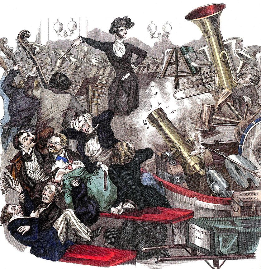 Bức vẽ biếm họa về âm thanh “ầm ĩ” của Hector Berlioz trên báo “Wiener theaterzeitung” năm 1846. © Getty