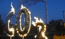Các nhà hoạt động vì môi trường đốt một biểu tượng khí carbon dioxide trong cuộc biểu tình trước nhà máy điện Klingenberg tại Berlin năm 2008