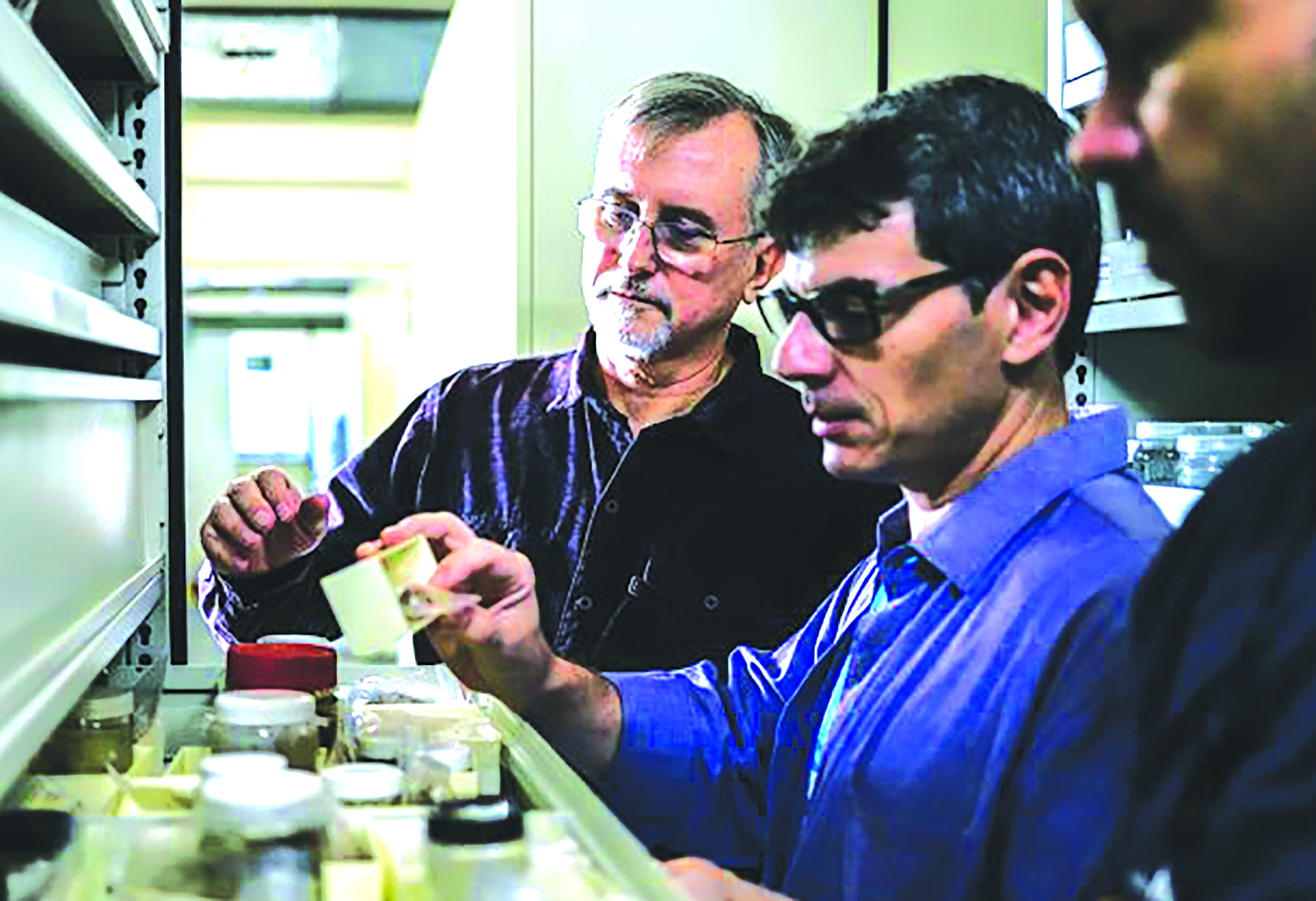 Paulo Buckup và Alexandre Pimenta kiểm tra các mẫu vật cứu được từ đám cháy. Nguồn: María Magdalena Arréllaga for Nature.