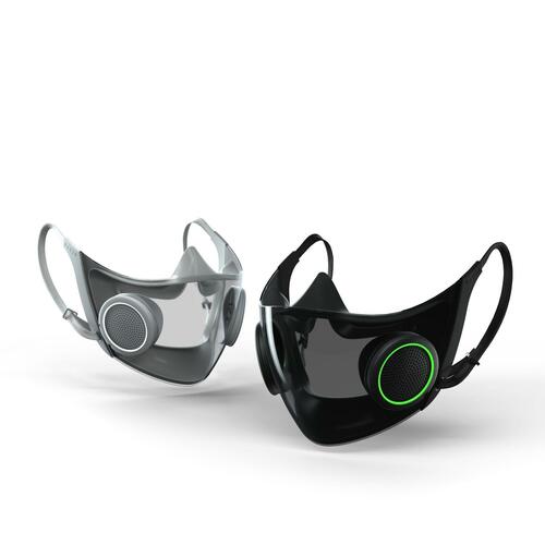Hãng Razer hứa hẹn với người dùng loại khẩu trang mang tên Hazel có khả năng bảo vệ virus và giao lưu với môi trường xung quanh tốt hơn. Một phần của khẩu trang được chế tạo bằng một loại nhựa trong suốt có bộ lọc khử trùng tự động để trong một cái hộp tích hợp với một bộ phận khuếch đại âm thanh. Trong khẩu trang còn có micro và loa chạy pin nhằm giúp cho tiếng nói được thanh thoát, dễ nghe. Khi cất khẩu trang vào hộp để khử khuẩn cũng là lúc nạp điện cho ắc qui và loa. Liệu mọi sự có được như nhà sản xuất cam kết hay không còn phải chờ chứng minh trong thực tế. Phần lớn các loại khẩu trang được trưng bày tại hội chợ còn là nguyên mẫu. Airpop đã đi xa hơn một bước, đã tiết lộ về giá bán và thời gian có mặt trên thị trường:Loại khẩu trang Active+- sẽ được đưa ra thị trường trong tháng giêng, giá bán là 150 đôla
