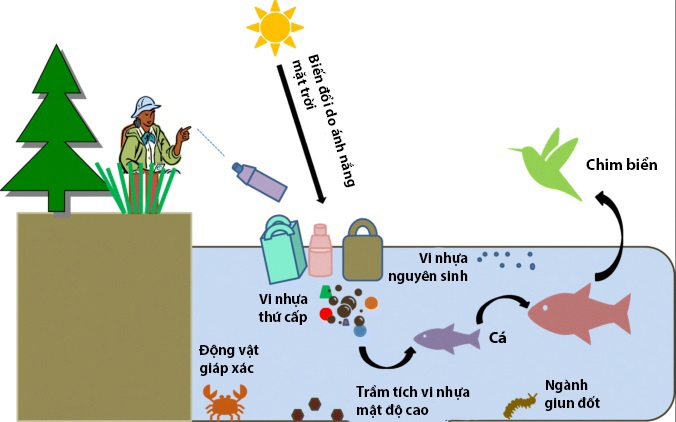 Vi nhựa là các mảnh nhựa, thường nhỏ hơn 5mm, vô tình được thải ra môi trường trong quá trình sản xuất và phân hủy, ví dụ như túi đựng hàng hóa hoặc chai nước – hoặc trong các hoạt động hằng ngày như giặt quần áo làm bằng sợi tổng hợp như nylon hoặc sử dụng các sản phẩm chăm sóc cá nhân có các hạt vi nhựa làm sạch trong đó.