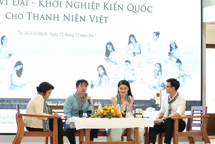 Ba diễn giả (từ trái sang) nhà báo Vũ Kim Hạnh, Á hậu Thùy Dung, TS Lê Mai Tùng tại buổi giao lưu.