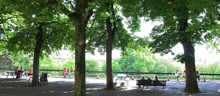 Cây dẻ (Aesculus hippocastanum) trên Promenade de la Treille ở Geneva là cây phi bản địa nhưng chúng cũng đem lại vẻ đẹp và bóng râm. Thêm vào đó, chúng mang ý nghĩa biểu tượng cho không gian này vì những bông hoa của chúng báo hiệu mùa xuân đến. Nguồn: UNIGE/SCHLAEPFER