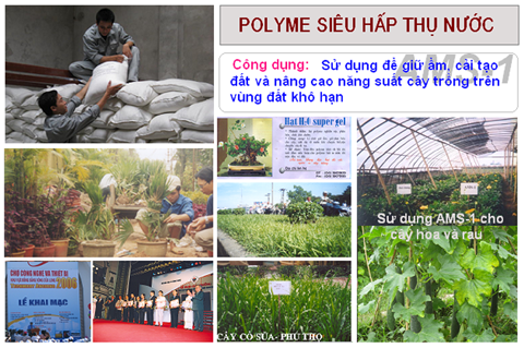 Có lẽ chính vì khả năng ứng dụng rộng rãi trong đời sống như vậy nên sau khi Viện Hóa học được giao chủ trì đề tài: “Nghiên cứu chế tạo và ứng dụng vật liệu polyme siêu hấp thụ nước” vào năm 2001, Viện tiếp tục được Bộ Khoa học và Công nghệ giao chủ trì thực hiện dự án sản xuất thử nghiệm cấp Nhà nước “Hoàn thiện công nghệ sản xuất polyme siêu hấp thụ nước và ứng dụng để giữ ẩm, cải tạo đất”. Mục tiêu của dự án là hoàn thiện dây chuyền công nghệ sẵn có, xây dựng quy trình công nghệ sản xuất polyme siêu hấp thụ nước công suất 100 tấn/năm, có giá thành hợp lý và phù hợp với điều kiện của Việt Nam…