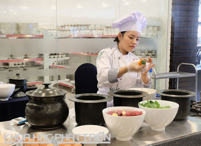 Các khách mời xem cách nấu các món ăn bằng nồi sứ Minh Long I. Ảnh: Hảo Linh