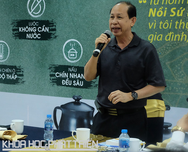 Cùng với các anh chị Nguyễn Quân, Phạm Chi Lan, Phạm Duy Hiển, Lê đăng Doanh, Văn Thành, Thu Hà, Trần Đức Viên…tôi được mời chứng kiến và thưởng thức tại chỗ các thực phẩm nấu bằng nồi sứ dưỡng sinh Minh Long. Xin nhắc lại, nấu bằng nồi sứ nhé, từ luộc rau, khoai, gà… không cần nước, không mỡ, không dính, không cháy…và ăn thì tươi ngon như thế nào, khỏi phải viết ra nữa, (dành cho các nhà quảng cáo làm việc này).