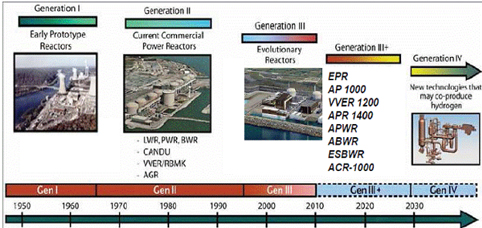 Các lò phản ứng thế hệ I là các lò phản ứng được đưa vào vận hành vào những thập kỷ 50-60 như Shippingport, Fermi I ở Mỹ…và đã được tháo dỡ gần hết. Đại đa số các lò phản ứng đang hoạt động hiện nay thuộc thế hệ II.