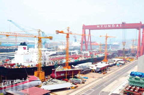 Tới thăm xưởng đóng tàu Hyundai tại Ulsan trải dài ven vịnh Mipo Hàn Quốc, du khách phải phát ngợp vì quy mô của cái xưởng lớn nhất thế giới với diện tích 7.200.000 m2, diện tích nhà có mái che 1,6 triệu m2; 10 ụ khô đóng tàu trong đó có ụ (ụ số 3) có thể chứa được con tàu lớn nhất thế giới, tức là tàu có sức chở 1 triệu tấn, còn ụ số 1 chuyên đóng các tàu chở khí hóa lỏng LNG, một mặt hàng đầy sức cạnh tranh của Hàn Quốc. Tại đây cứ 4 ngày lại có một con tàu trị giá 80 triệu USD được hạ thủy xuống nước và người ta đang chế tạo chiếc tàu có thể chở được 1 vạn thùng container. Để dễ hình dung khả năng của con tàu này, có nhà báo người Mỹ diễn giải rằng số container đó chứa được 10 triệu đôi giày thể thao hay 100 triệu con búp bê Barbie! Ngoài Hyundai còn có hai “ông lớn” khác trong đóng tàu là Samsung và Daewoo, đó là chưa kể tới các hãng STX, Samho, Hanjin, Sungdong là những hãng nằm trong danh sách các nhà đóng tàu hàng đầu thế giới. Vào năm 2007, STX đã mua lại Aker, là một trong những tập đoàn đóng tàu lớn nhất châu Âu. Vào năm 2008, Hàn Quốc vẫn sản xuất ra một số tàu nhiều hơn toàn bộ sản lượng của phần còn lại của thế giới (xem bảng)2.