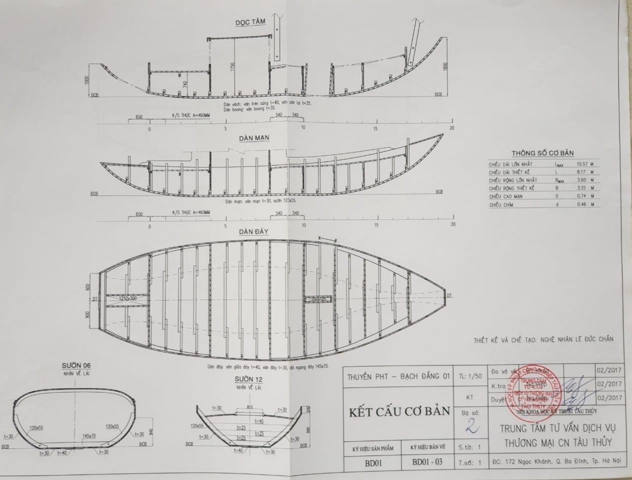 Một phần bản vẽ kỹ thuật thuyền buồm ba vát, một nỗ lực hiện đại hóa kiến thức dân gian.