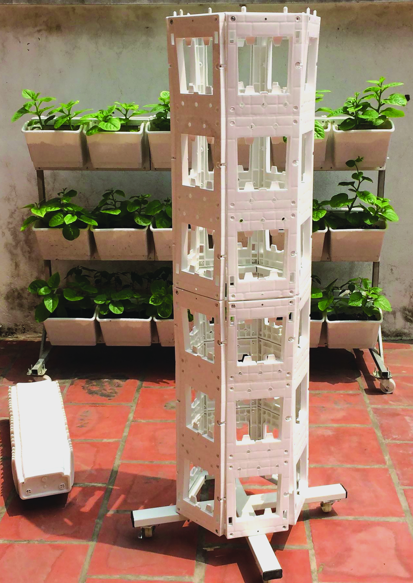o Mỗi tháp gồm 36 chậu kích thước 21x21cm có thể tháo xuống lắp lên thuận tiện khi trồng